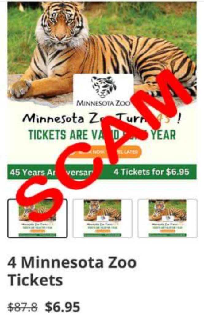 The scammers are placing social media ads promising anniversary celebration zoo ticket packages — four for $6.95.