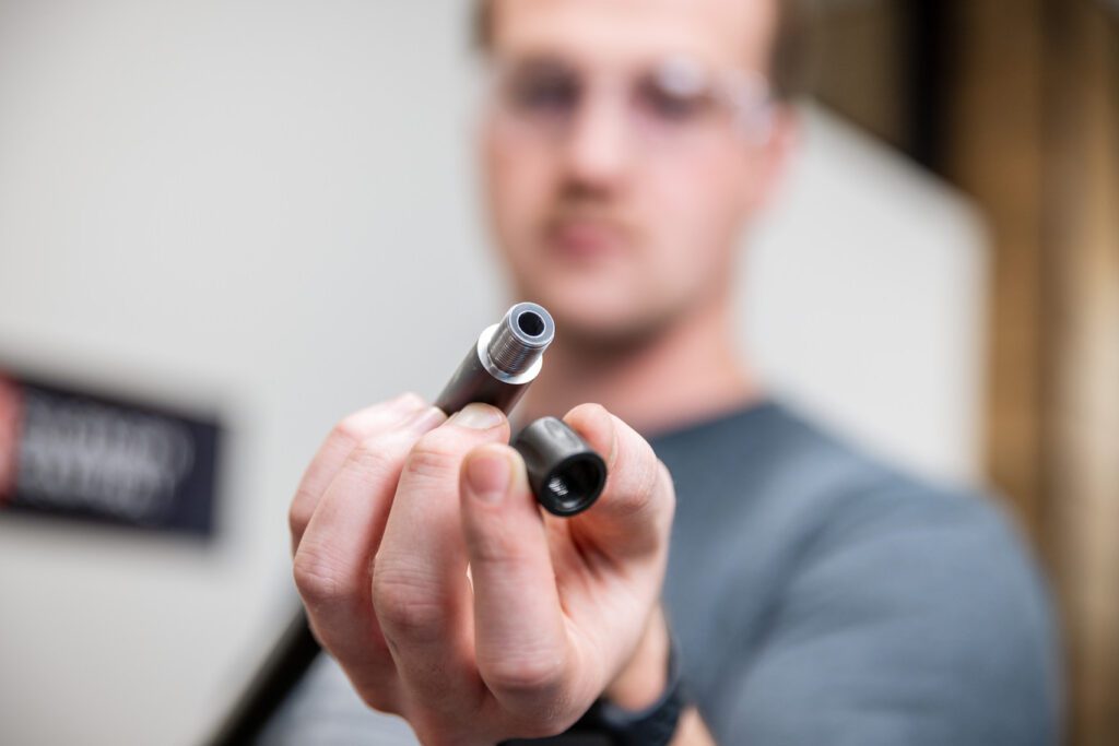 “We outline the approach to removing accessories and properly packaging the gun in a provided box, and we include all the information in terms of what we need to know about the gun in order to thread it,” VanLaecken said. “We send a gun case along with a return label to send the gun to us at no cost, and once we receive it, our gunsmith will break it down to the barrel that needs to be threaded, and then it goes into our lathe to be threaded by our machinist. Once it’s threaded, we gauge-check and check alignment with the suppressor, and from there, we’ll do a quality inspection and ship it back to the customer’s front door.”