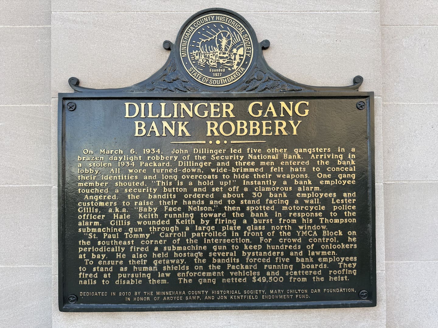 On March 6, 1934, six members of the Dillinger Gang, armed with Thompson submachine guns, stormed the bank building and robbed it of $46,000. George “Baby Face” Nelson fired on Hale Keith, one of the police officers who had responded to the robbery. He was seriously hurt but survived. Other police officers were captured by the gang when they responded, and 30 hostages were forced to surround the robbers as a human shield and walk them to their getaway car. It’s unknown if John Dillinger himself was actually in Sioux Falls. None of the stolen money was recovered.