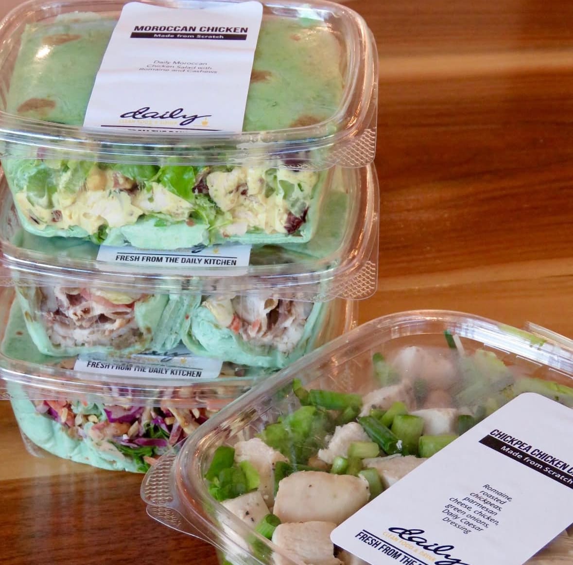 To start, Glacial Lakes is offering three wraps – Moroccan Chicken Salad, Cheeseburger and Chicken Bacon Ranch — and two salads – Daily Chop and Buffalo Rancher.