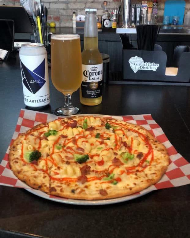 For lunch, customers also can order the pizzas that Glacial Lakes has been serving at night through its partnership with Sunny’s Pizzeria, along with munchies that the bar serves like fried stuffed mushrooms and pickles, and chips and salsa.