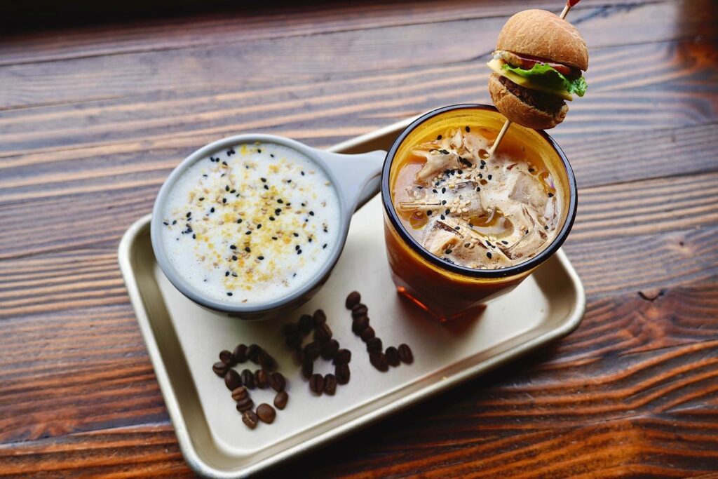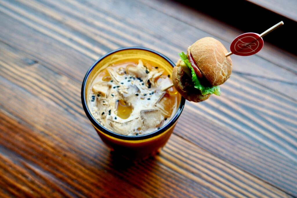 While there aren’t any real full-sized beef burgers involved in the latte, there are plenty of ingredients that will make you think of one.