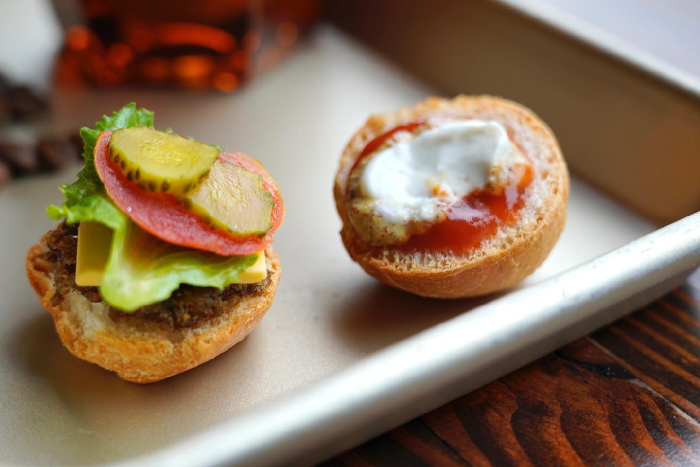 Each BBL is served with a miniature veggie burger, slice of American-style cheese product and other condiments. The shop teamed up with Look’s Bakehouse for mini brioche buns.