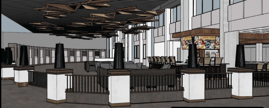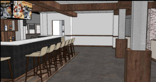 The new design includes removing a back wall and turning the area that flows into the atrium into a circular bar space with additional soft seating.