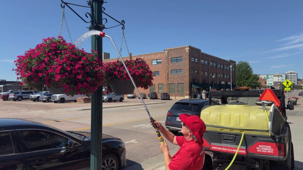She watched as one of the Downtown Sioux Falls Inc. ambassadors shook a man’s hand on the street and talked with him about the plants the ambassador was watering.