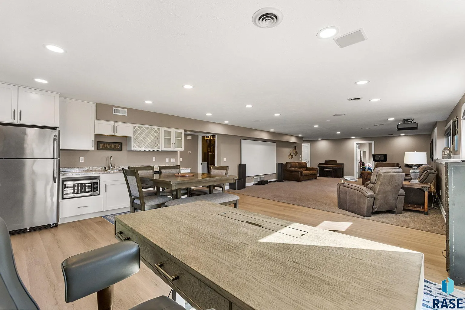 In the lower level, a full wet bar with dishwasher and full fridge anchors the ideal hangout zone.