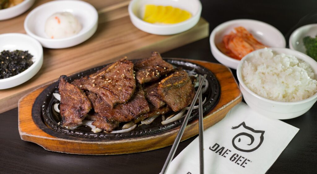 Customers at Dae Gee, which means “pig” in Korean, can choose from a variety of traditional marinated Korean meats such as sam gyeob sal, or sliced pork belly; galbee, which are beef short ribs; and dak bulgogi, or chicken. Meat, fish and vegetarian options can be enjoyed in a bowl, hot stone pot or tucked inside lettuce and eaten as a wrap. Entrees can be piled high with other ingredients such as rice, kimchee, broccoli, radish and fish cakes.