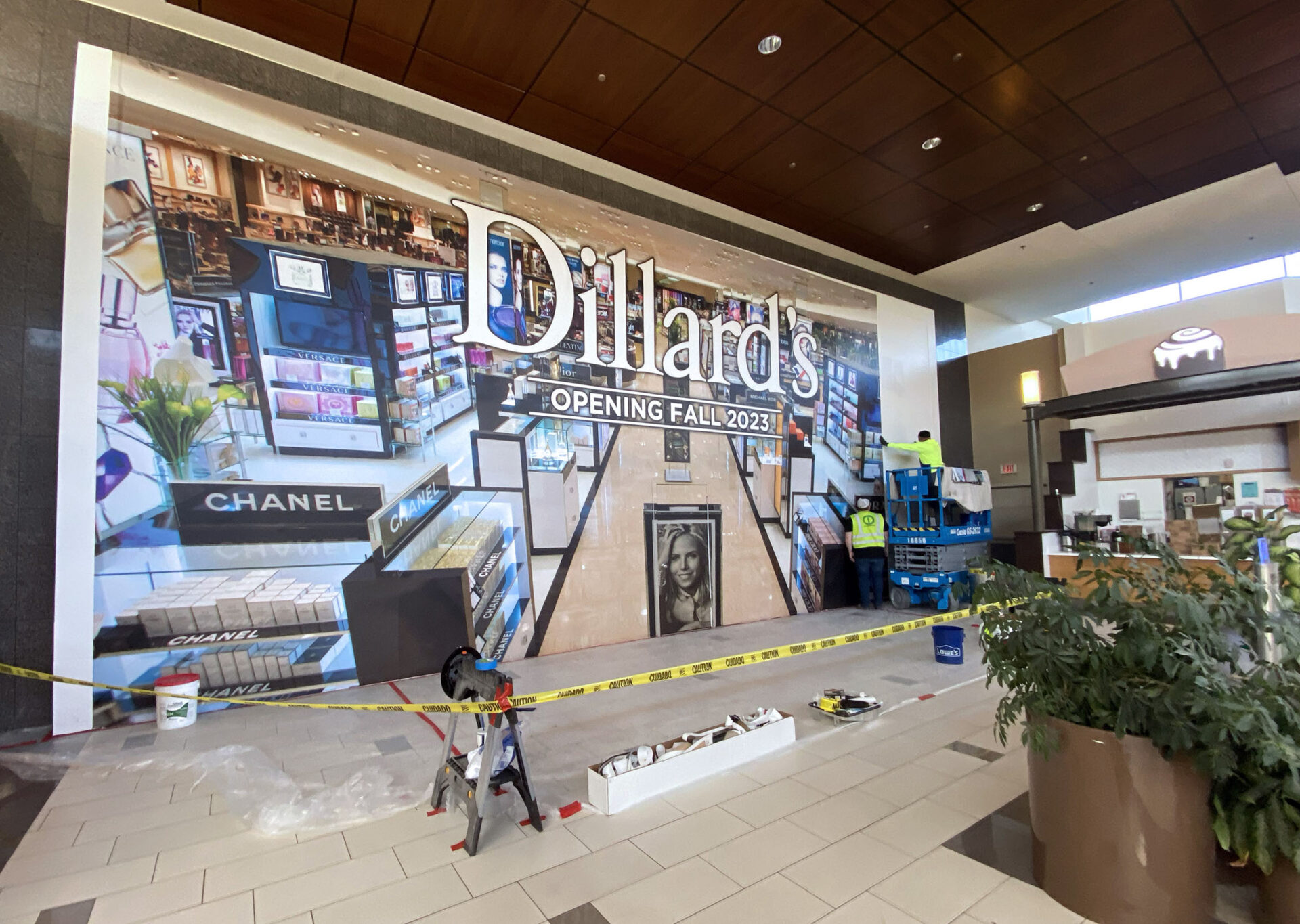 Dillard’s has a literal sign of progress up, too, as shoppers will find the future entrance off the food court has a new floor-to-ceiling sign.