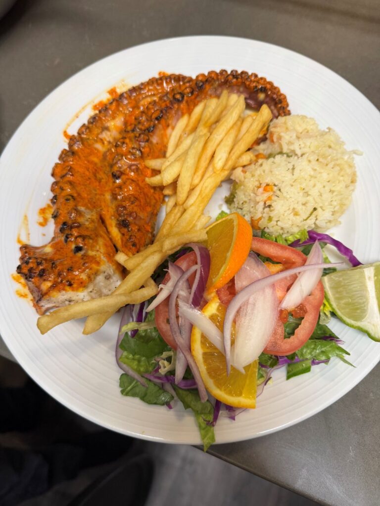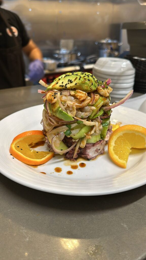 The menu is extensive with 17 seafood appetizers, many of which are filling enough for a meal; eight shrimp entrees; eight with octopus; and more than 30 tilapia, salmon and mahi-mahi dishes.