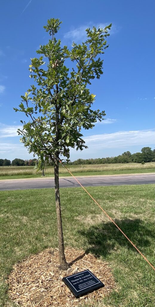 This tree was just planted at EROS to recognize Thomas Loveland, long-time chief scientist at the center and the visionary for the Landsat Science Team, which provides scientific and technical evaluations to help ensure the continued success of the Landsat program. A conference room at EROS was named after Loveland during the center’s 50th anniversary celebration earlier this month. Loveland died May 13, 2022.