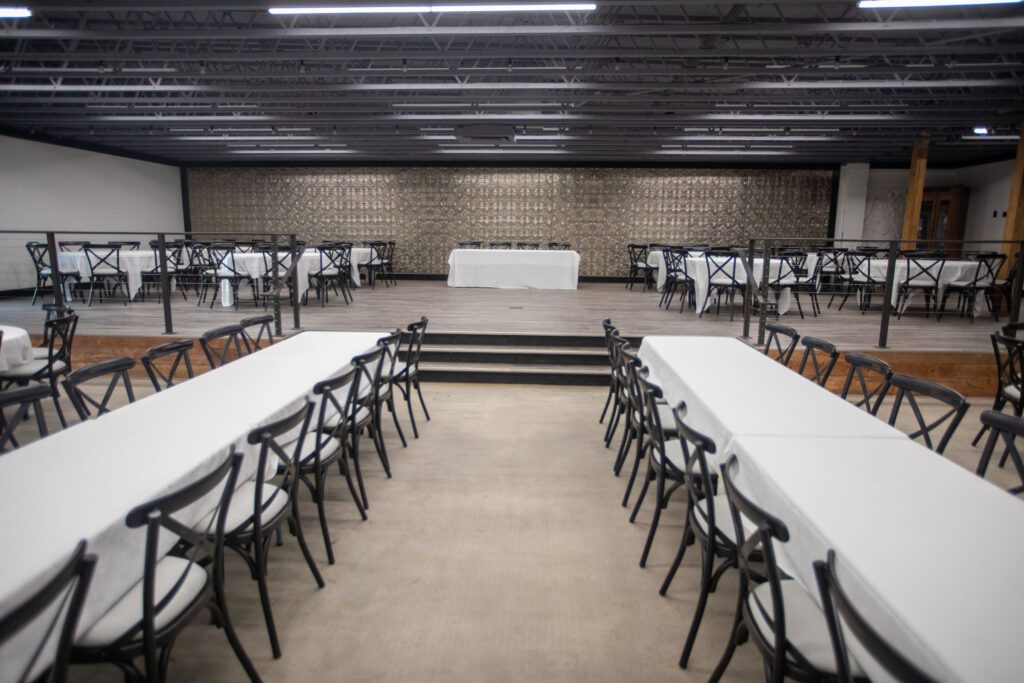 The space can seat up to 300 people comfortably, she said. An elevated stage can hold the head table for a wedding party along with smaller tables for family. It also could be used for a band or as a dance floor.