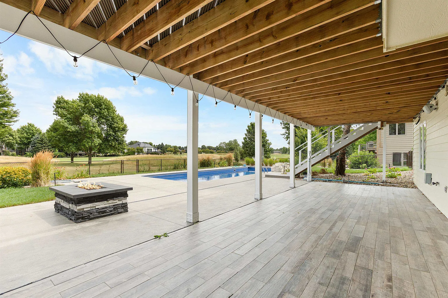 The space is further enhanced by hookups to complete your dream backyard with a kitchen and hot tub.