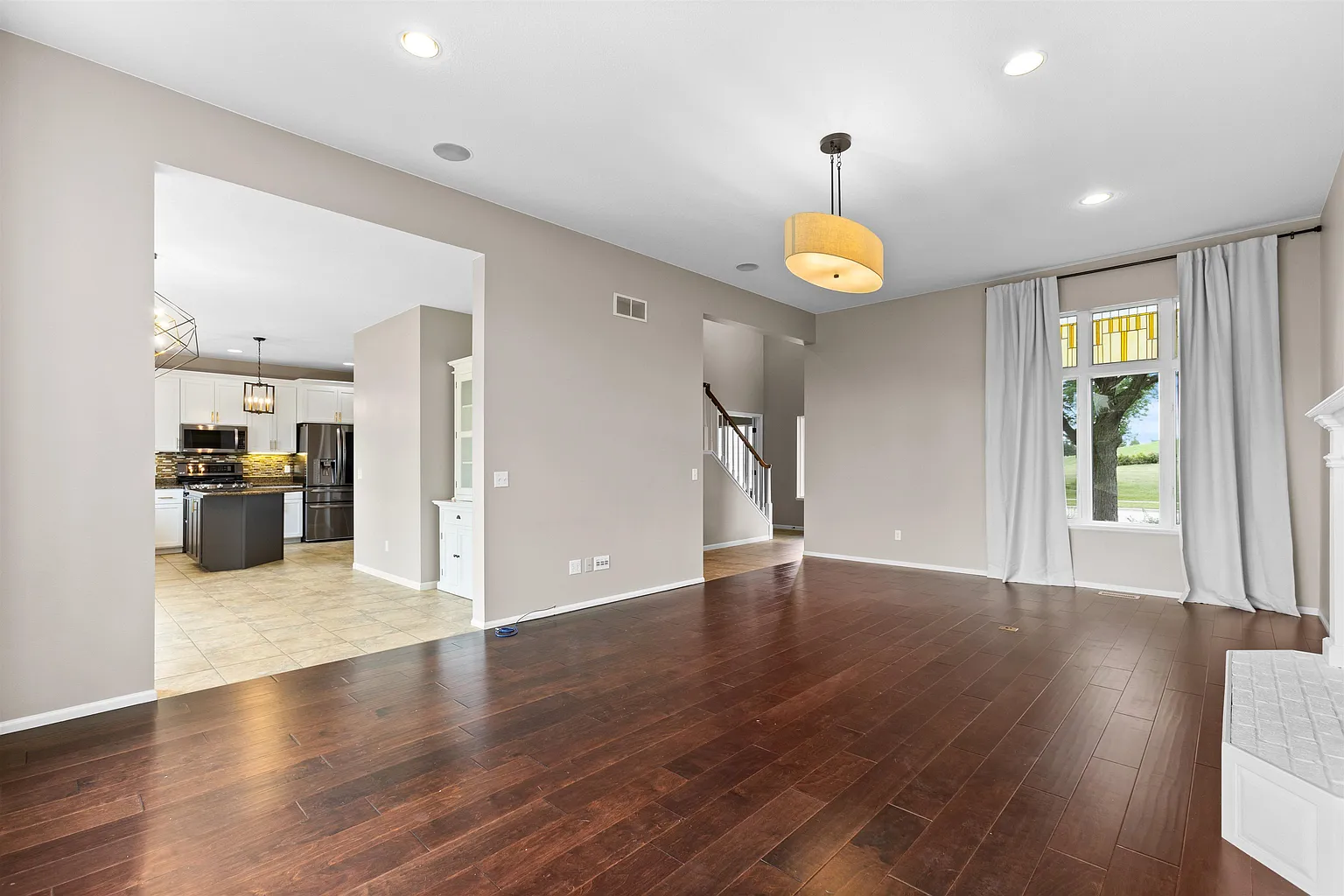 A captivating entry greets you with soaring ceilings, leading to an inviting living room.