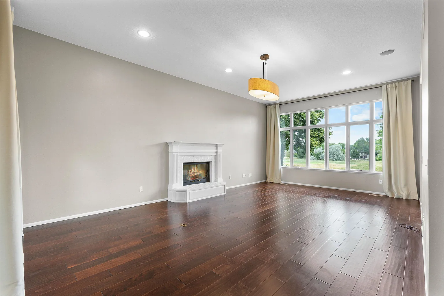 The space seamlessly transitions to an outdoor patio and firepit for year-round comfort.