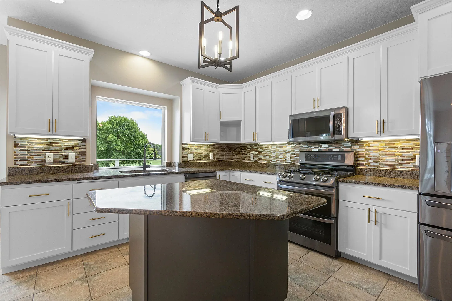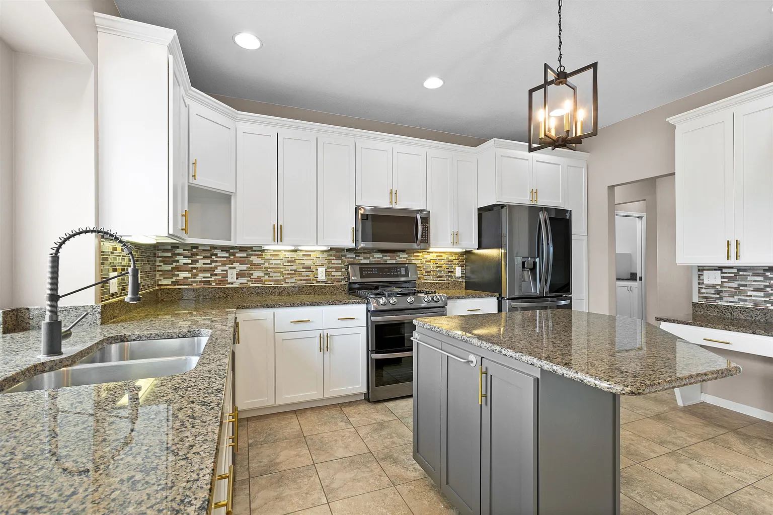 A beautifully renovated kitchen serves as the heart of the home, featuring granite counters, a generous breakfast island and a seamless flow into the dining area.