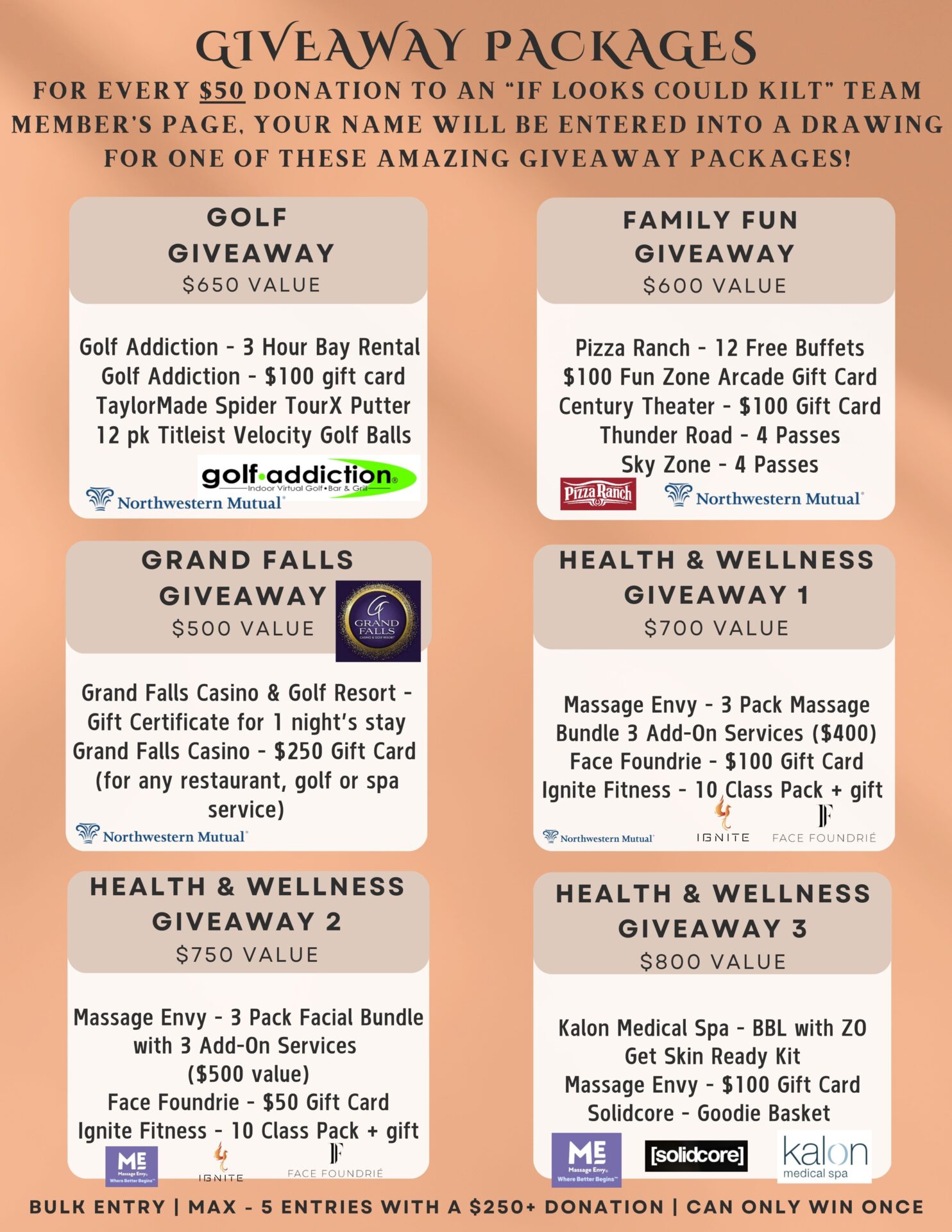 Other participating area businesses include Northwestern Mutual, Massage Envy, Face Foundrie, Grand Falls Casino and Golf Resort, Kalon Medical Spa, Golf Addiction, Solid Core, Texas Roadhouse, Pizza Ranch, Blend Interactive, The Event Company, Maddie Peschong Photography, White Space Studio and American Family Insurance.