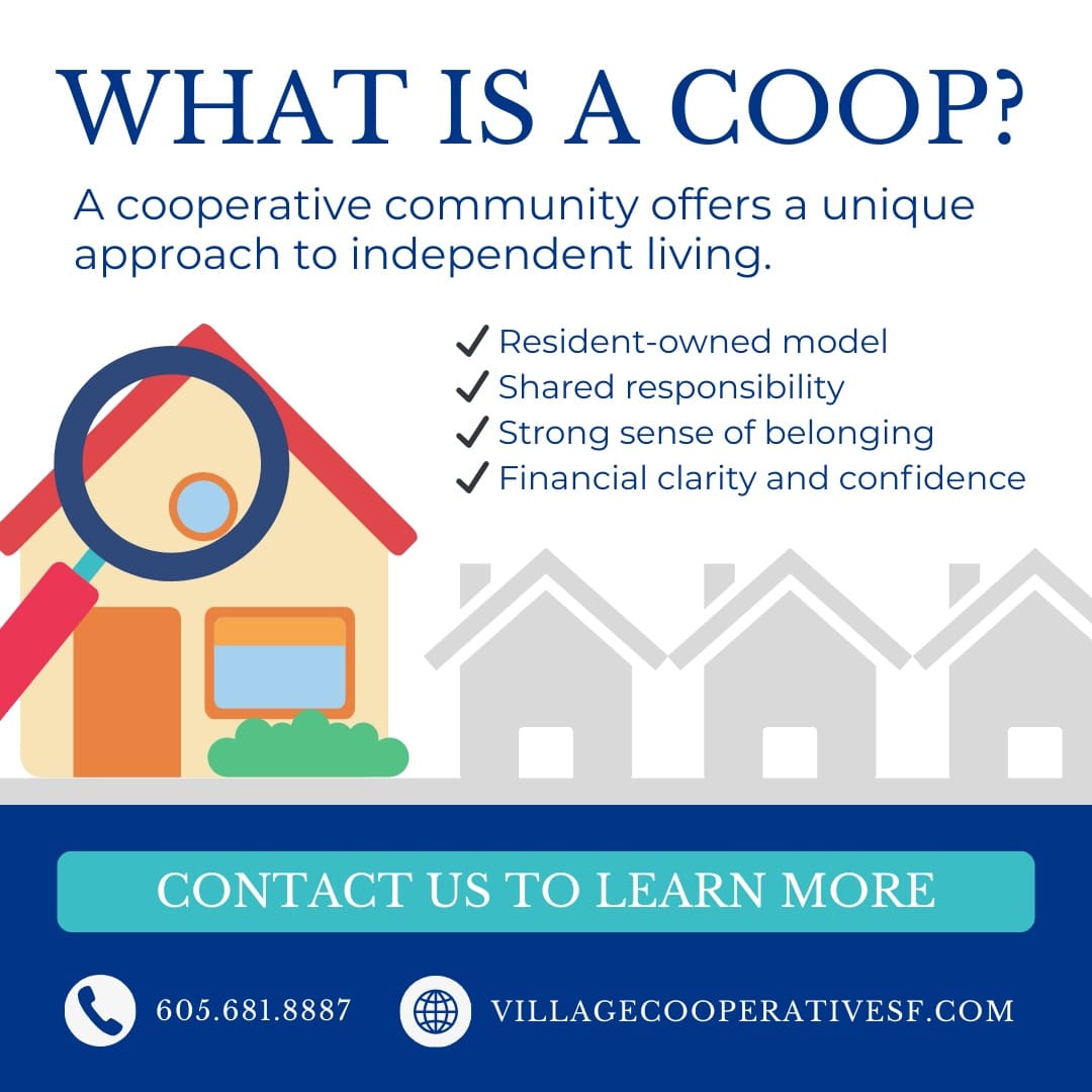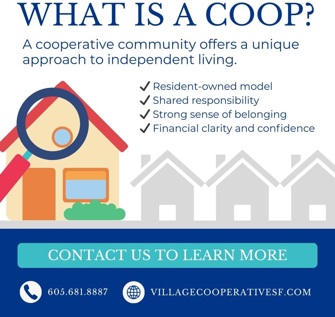 “The Village Cooperative is the only cooperative housing community in South Dakota and operates very differently from rental housing or entry-fee senior living,” community president Greg LaFollette said.