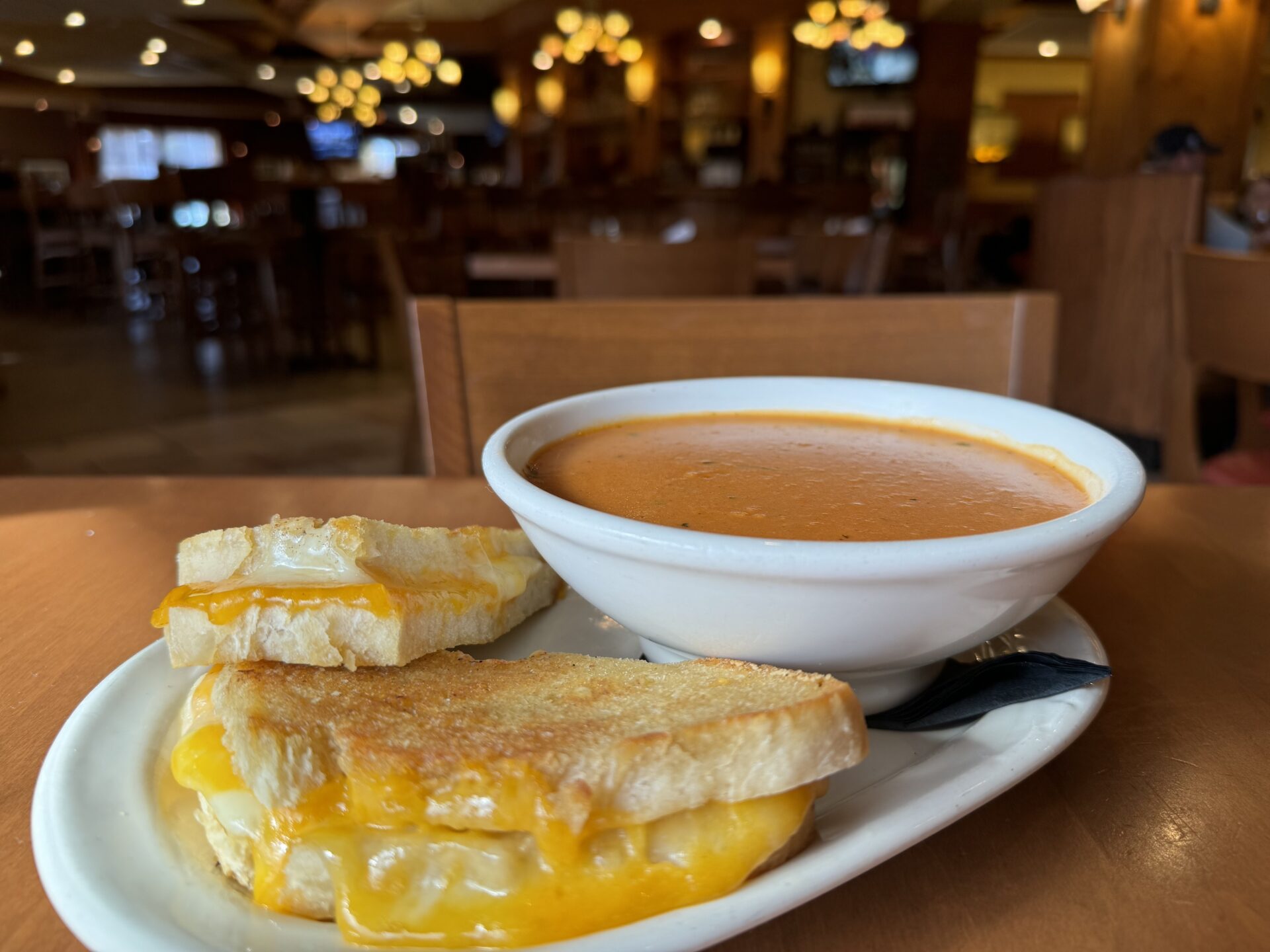 And keeping with the comfort food theme, a classic grilled cheese with tomato soup is on the fall features menu. It’s cheddar and Swiss on Breadsmith sourdough served with a bowl of tomato soup or the soup du jour.
