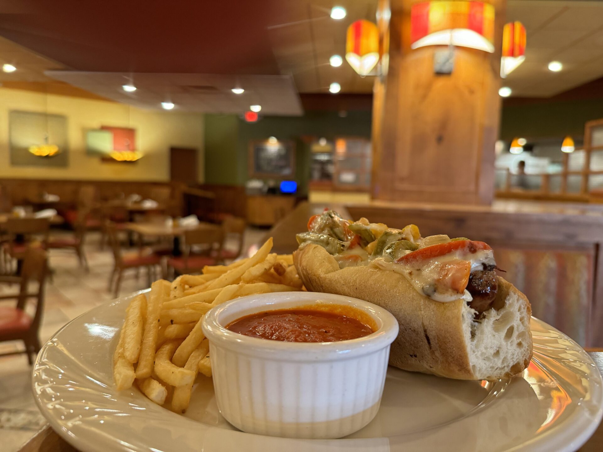 Another popular new dish is the hot sausage hoagie, made with grilled sausage from Lindy Land & Livestock near Alcester and served with sauteed peppers and onions, provolone and marinara.