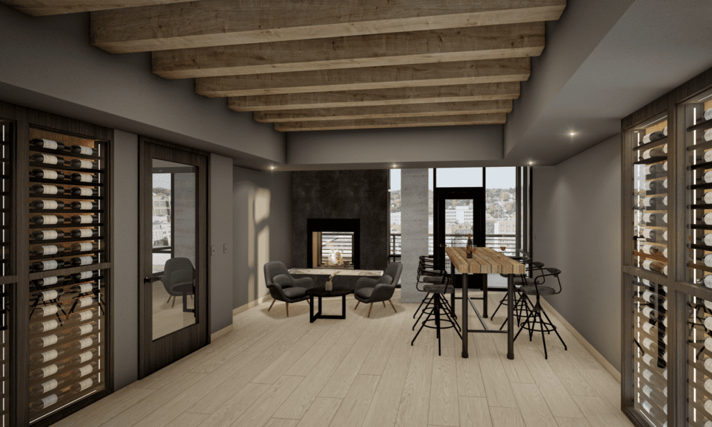 Additionally, each resident will have access to a more intimate space featuring an indoor/outdoor fireplace, patio and designated coolers for red and white wines.