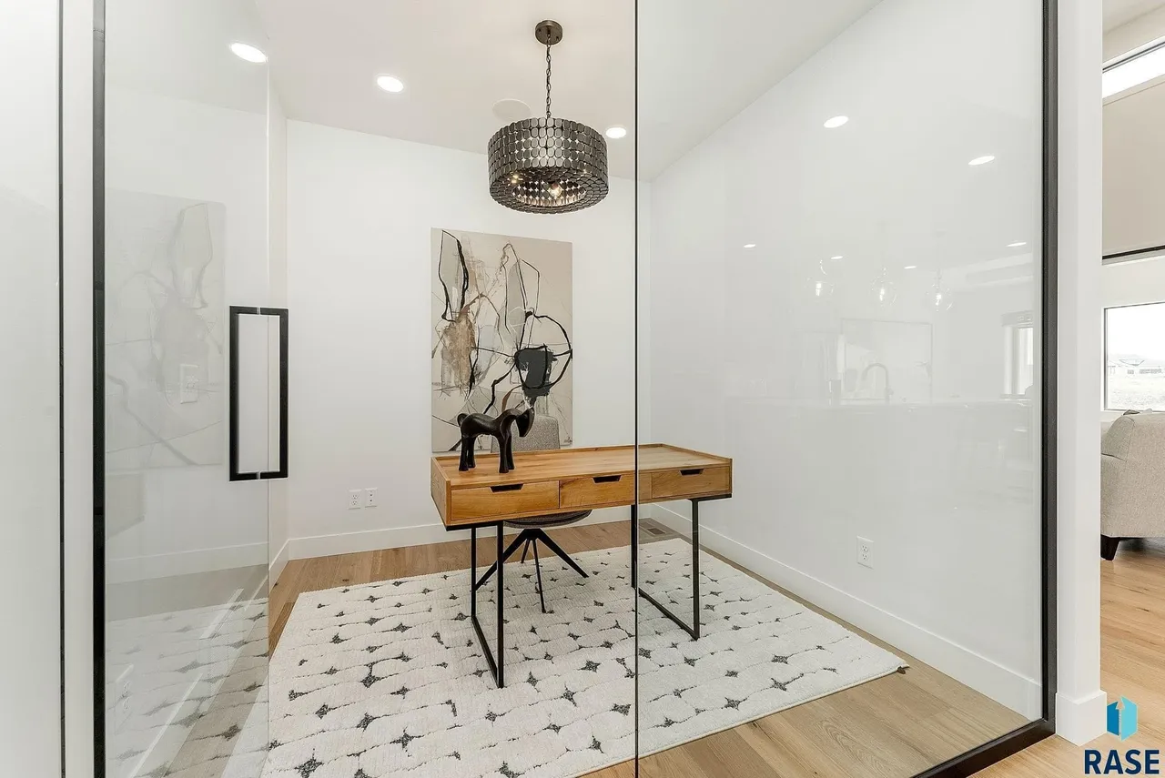 In addition to the three bedrooms, there’s an office with a glass wall.