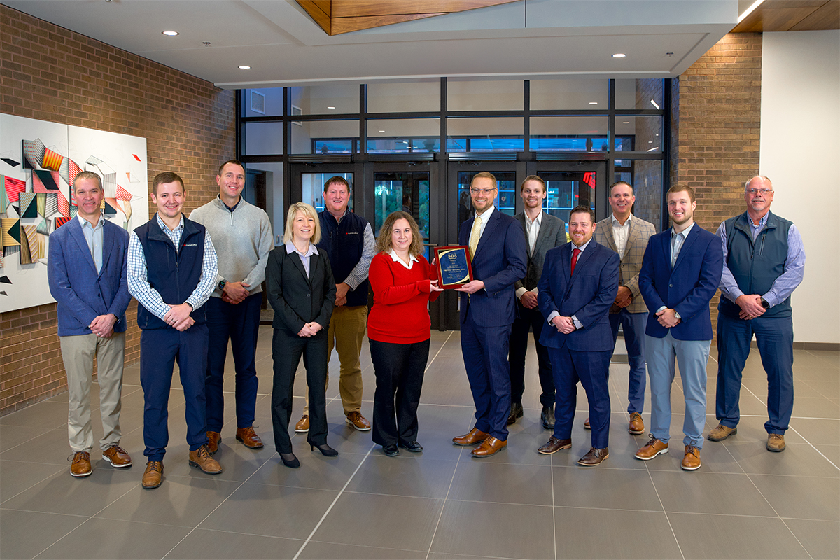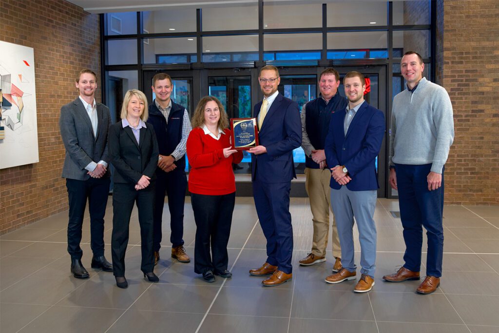 Alison Carlson and Bryson Patterson (center) with six of the bank’s lenders who wrote SBA loans in 2024