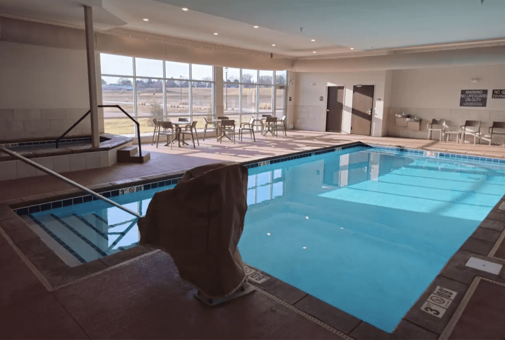 In addition to a complimentary breakfast, the hotel offers a sports lounge with beer, wine and pizza that’s open until 1 a.m., plus a pool, hot tub, laundry and conference area.
