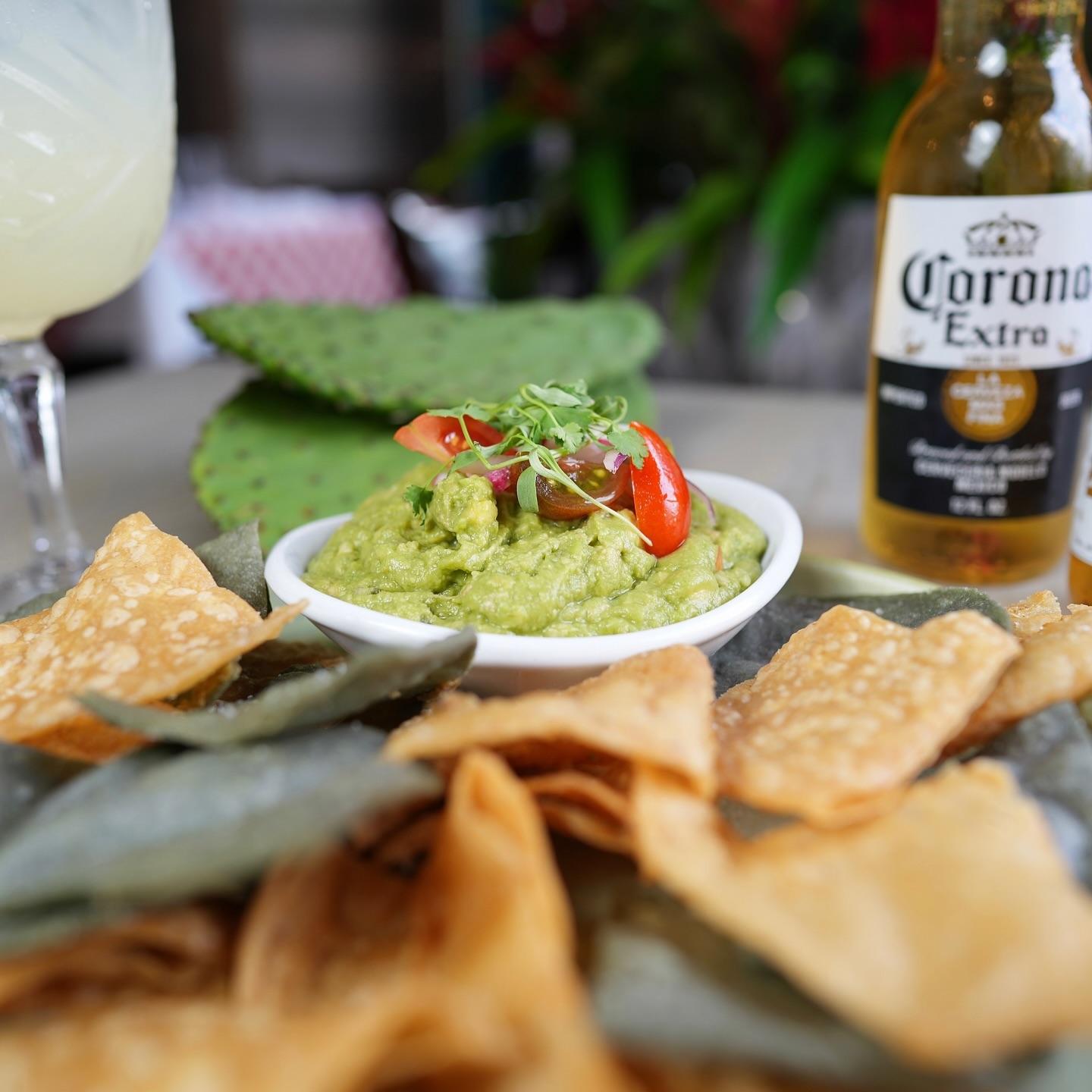 The menu features appetizers, including several varieties of guacamole, plus many options for chef-composed tacos, as well as a make-your-own platter.