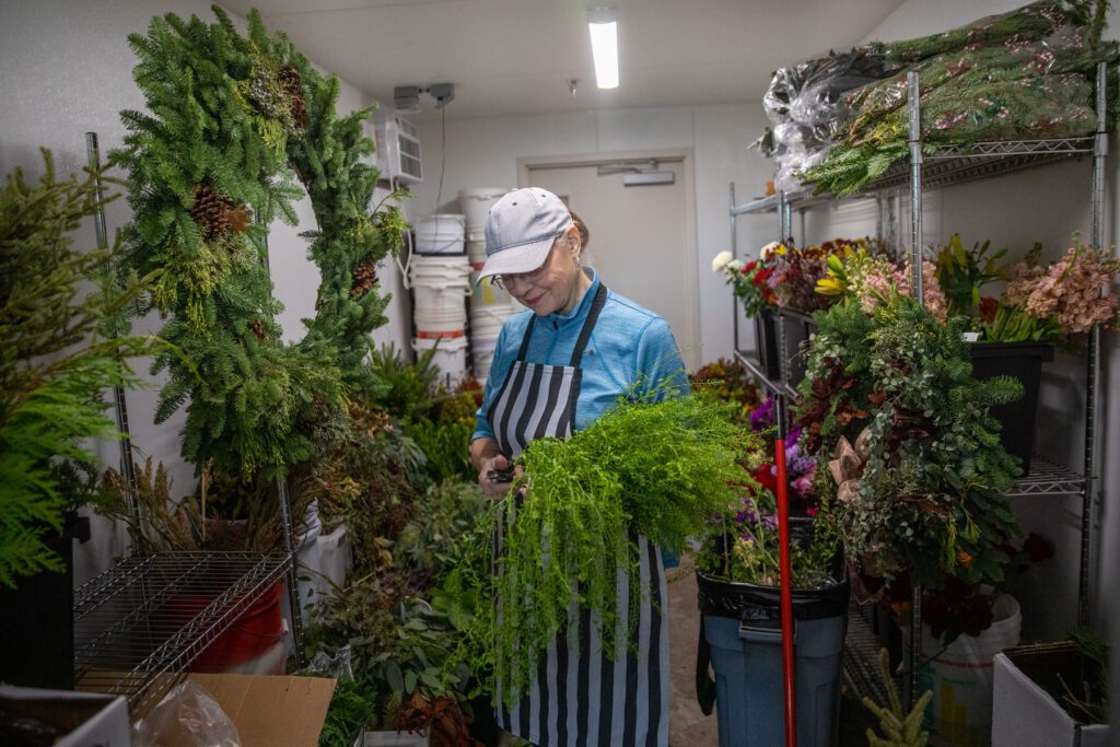 The new space features a large walk-in cooler so that customers can pick out their own flowers and 24-foot ceilings to bring in natural light.