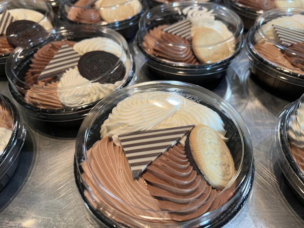 Desserts range from brownies and blondies to triple chocolate mousse and frozen chocolate-dipped cheesecake.