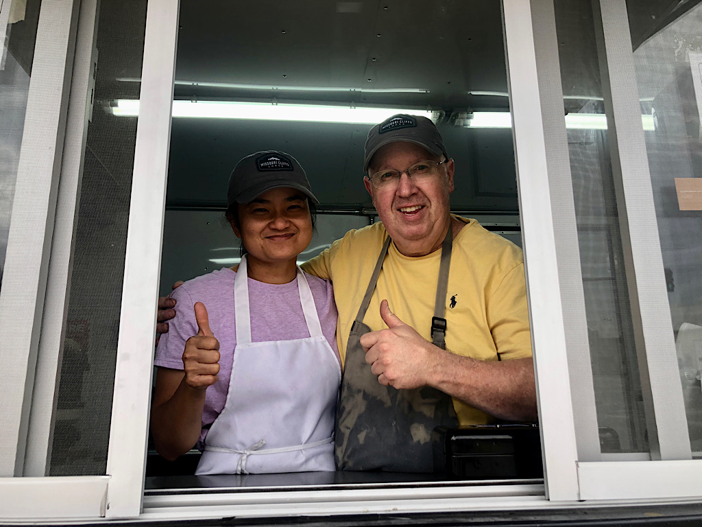 She worked with him as they traveled around cooking at private lodges. Now, she helps him on the trailer and takes care of running social media for the business.