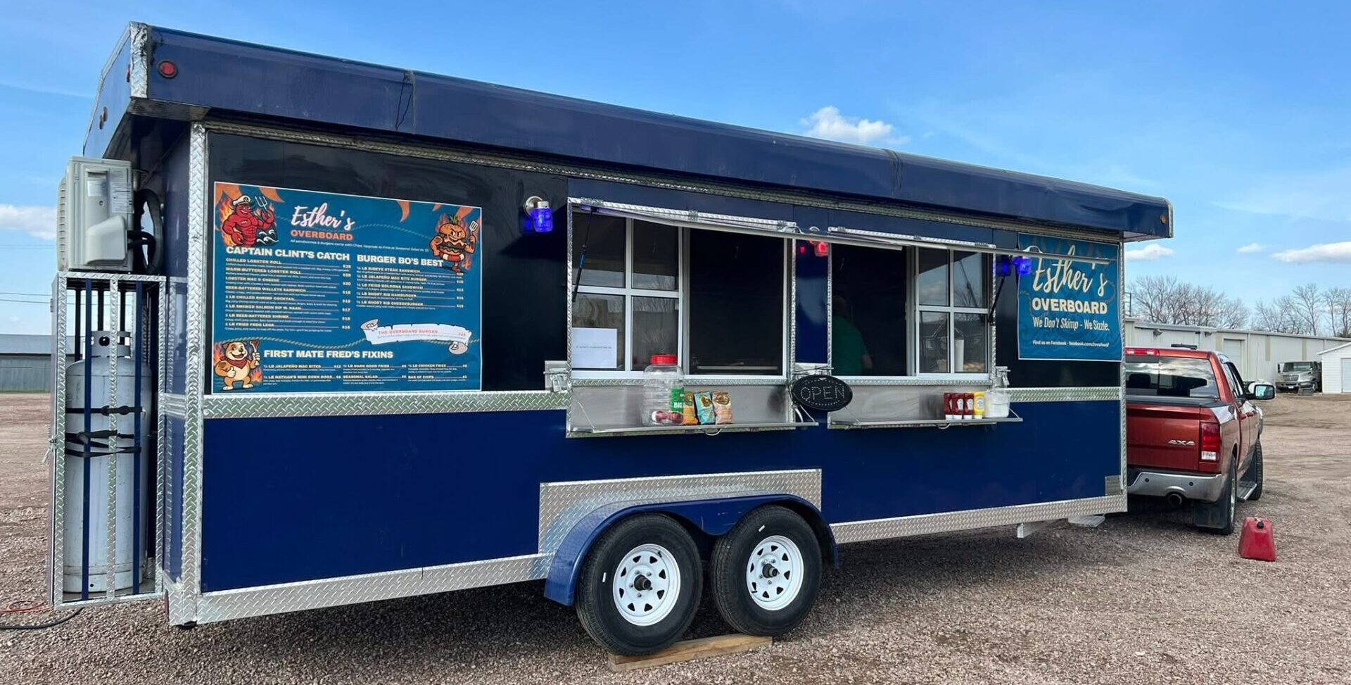 Esther’s Overboard is available for public and private events on the weekends. Find locations on Facebook or Street Food Finder.
