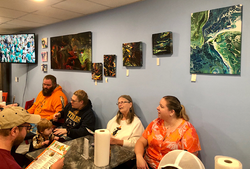 The first featured artist is Jason Gandee of Sioux Falls, who owns 605 Artisan Surfaces. He made the restaurant’s tabletops and also creates artwork.