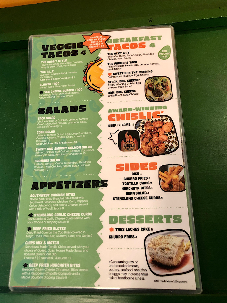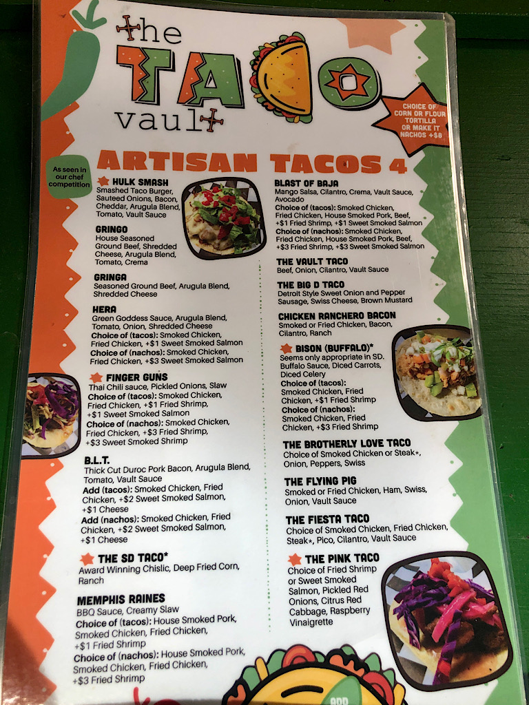 At a friends and family night earlier this week, the most popular tacos were The Vault with beef, onion, cilantro and Vault sauce, and The SD with chislic, deep-fried corn and ranch dressing, Marshall said. Vault sauce is a creamy chipotle lime sauce, “heavy emphasis on the lime.”
