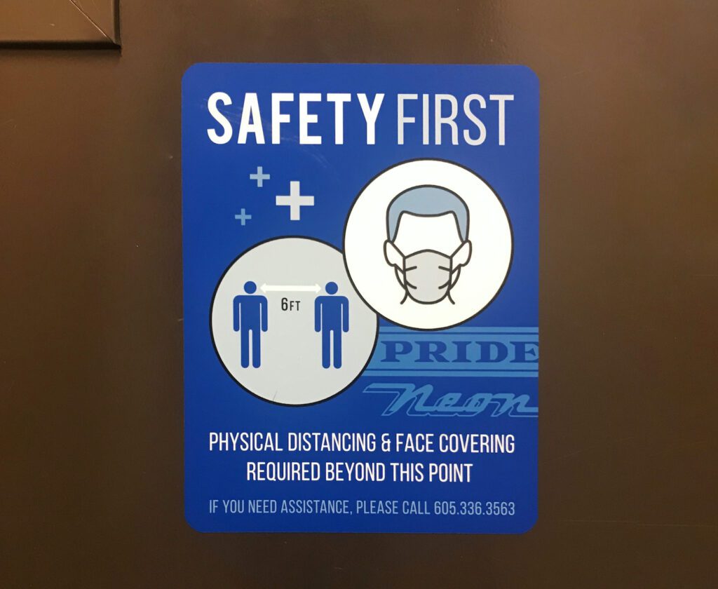 Many organizations have worked with Pride Neon to create signs for physical distancing, aisle traffic directions, masking and other health-related reminders.