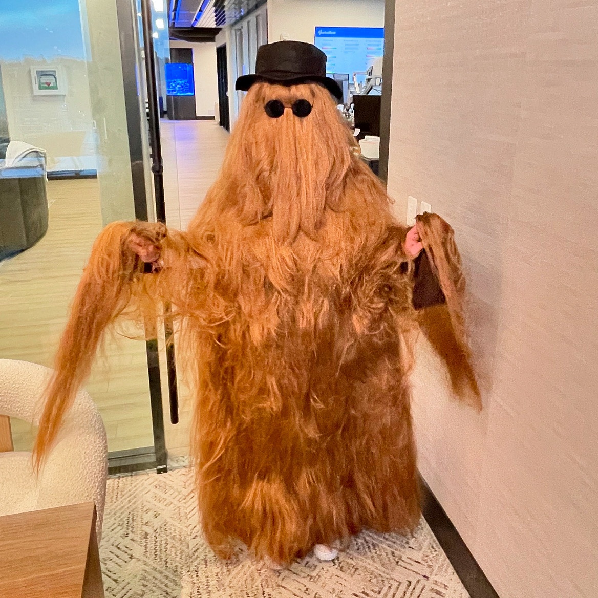 Tokheim dressed as Cousin Itt for the office Halloween costume contest.