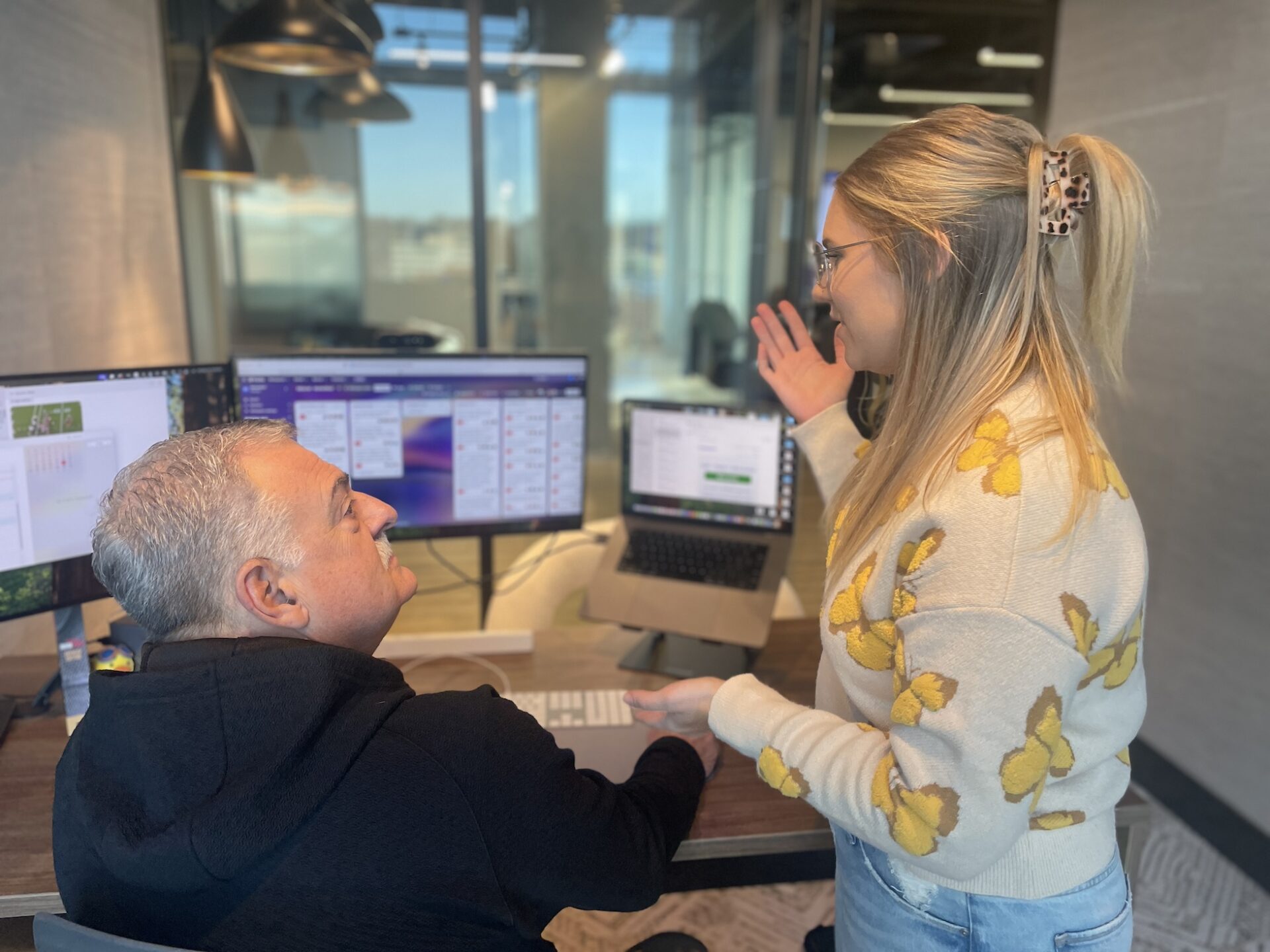Buckley joins Tokheim at her MarketBeat desk to help with some article editing.