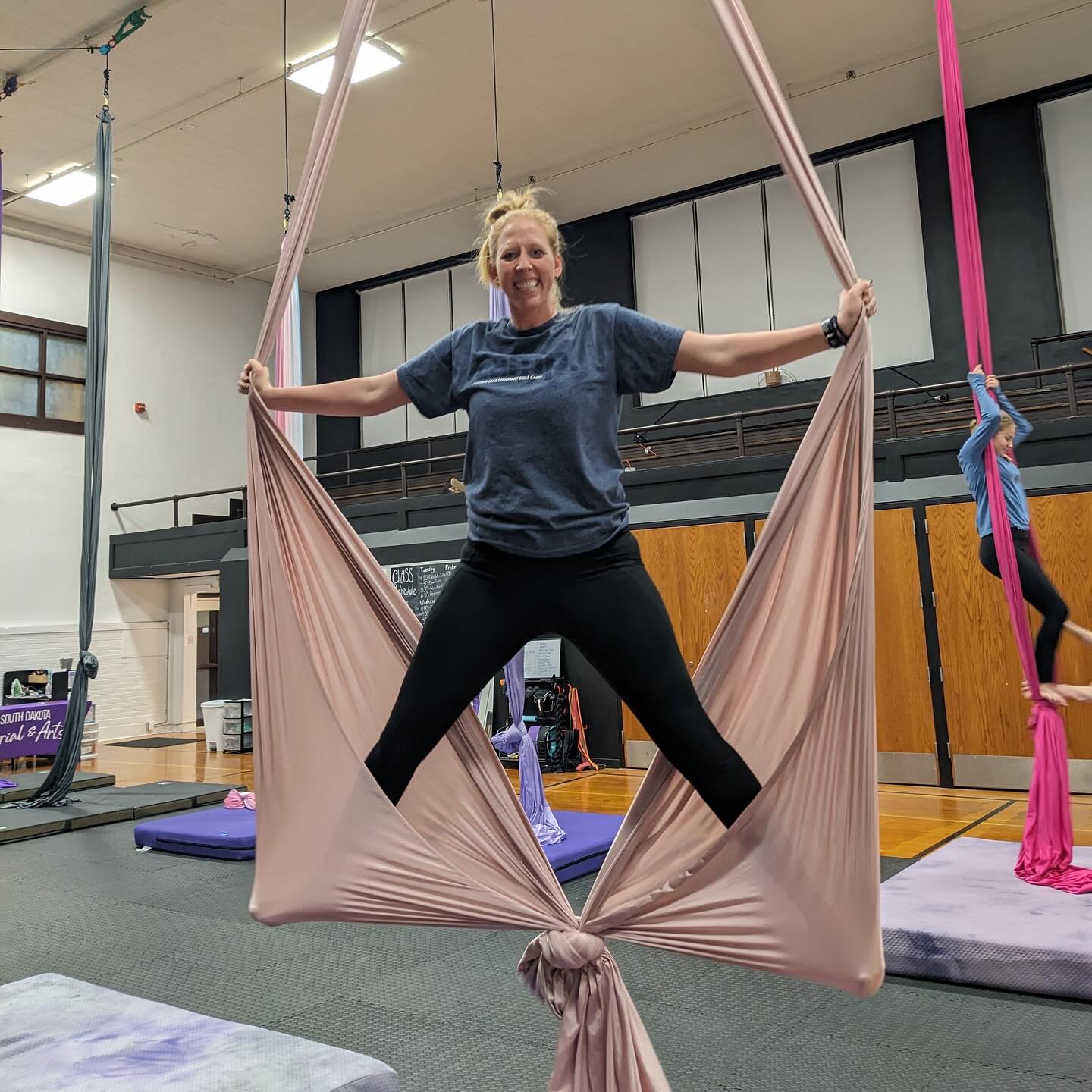 During early morning classes, people have commented on how the rising sun lights up the room, she said. South Dakota Aerial & Arts took possession of the space Nov. 30, 2022, and began offering classes in January.