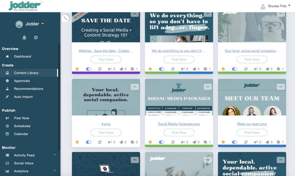 Jodder is designed to help create and publish social media content with varying degrees of content support. The company is using a network of content producers to support Jodder’s clients, led by director of client success and training Milana Semmler, whose background also includes marketing at Profile by Sanford.