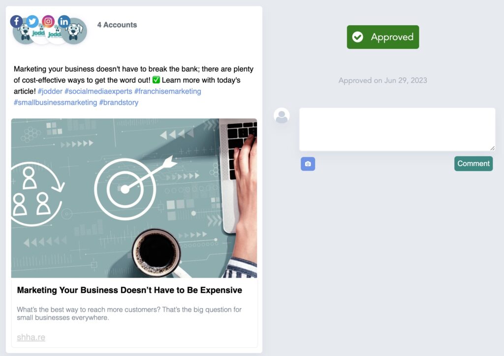 There is a built-in approval process option that allows for different levels of oversight, as well as the ability to automate certain posts such as job listings or blogs.