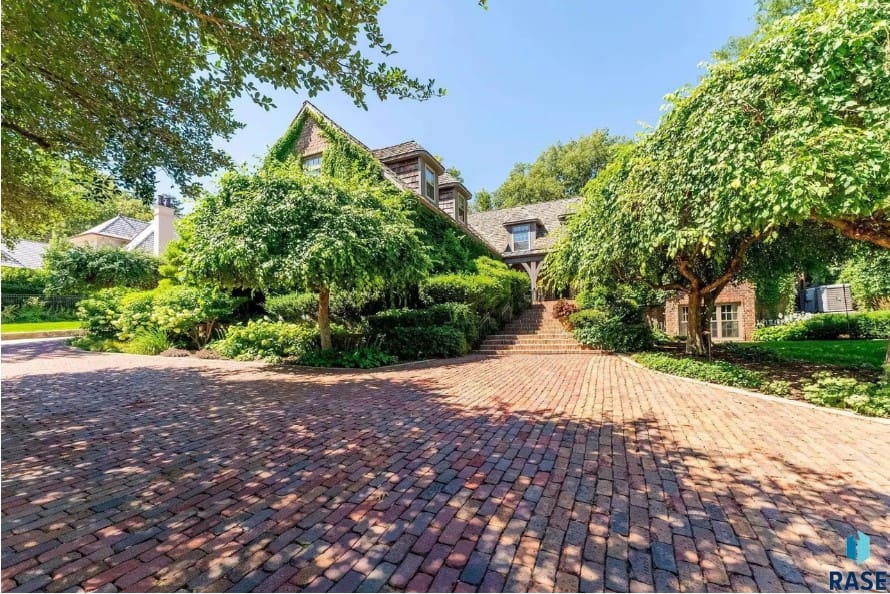 The French Country-inspired house was built in 1989 on a half-acre lot. It has 9,100 square feet, with five bedrooms and five bathrooms. Features include a gourmet kitchen, sunroom and four fireplaces, including one in the primary suite. The lower level has a bar, kitchenette, wine cellar, TV area with surround sound and a game and exercise area with a universal gym set. A carriage house includes two parking space and a partially finished second floor with 600 square feet of living space. Brick pavers are used around the outside of the home.