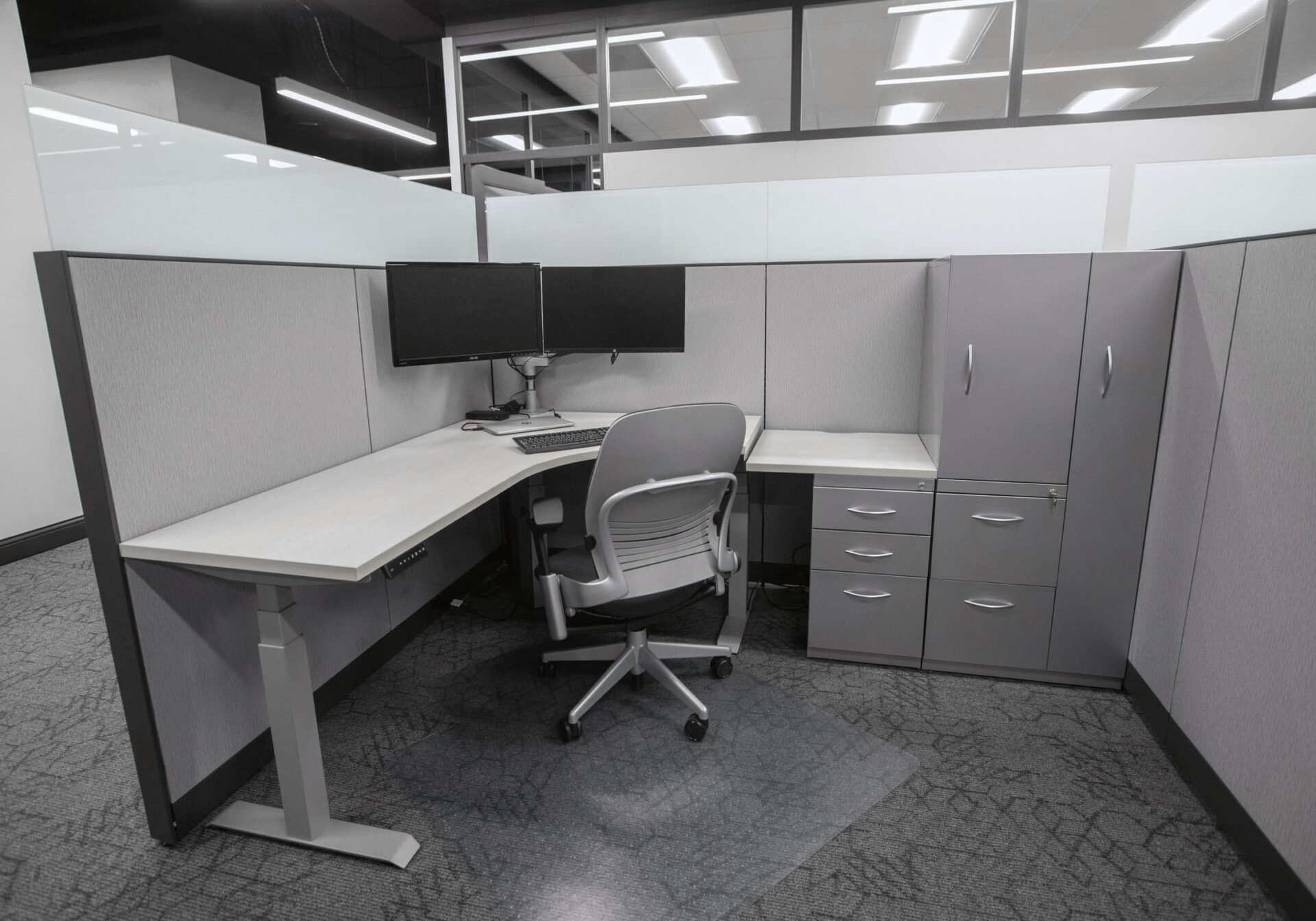 “Before, they had large workstations with lots of storage, and it did have a dated look, plus it wasn’t needed for the type of work they do today,” Young said. “They wanted a more collaborative feel, so now they’re in pods versus individual workstations with high walls. We lowered the walls, added height-adjustable desks, and it’s really more current and functional, and it suits their work well.”