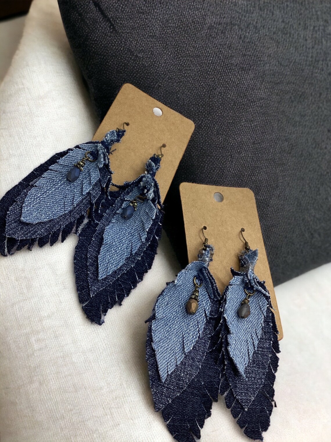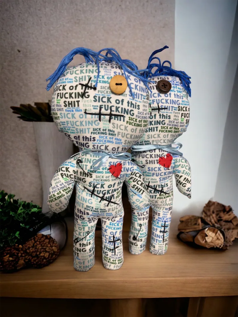 Her Etsy site also offers “dammit dolls” with sharp needles for people who need to express their frustrations, jewelry made with old denim scraps, keychains made of blue jeans, scented eye pillows and cards that can be tucked under car windshields. The cards offer feedback on someone’s parking skills or lack of them.