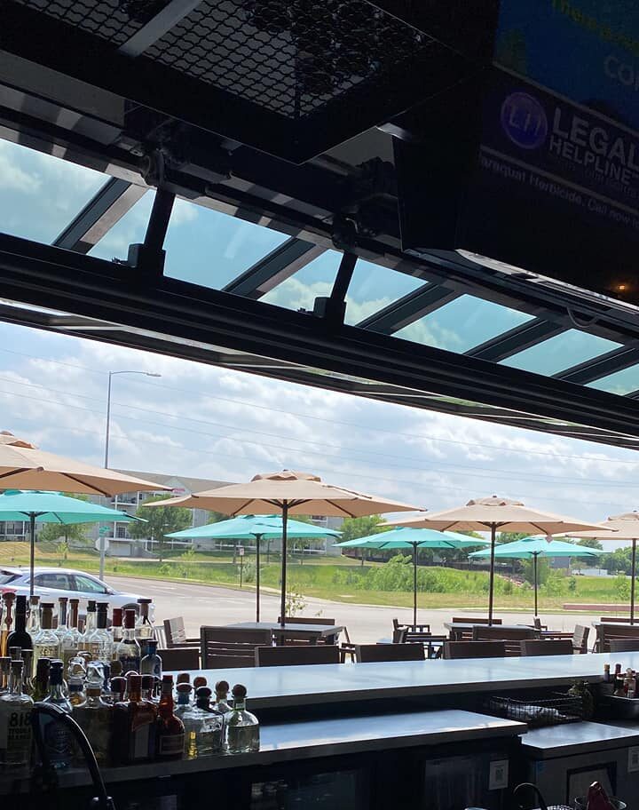 The taproom for the Minnesota-based brewery, which also features a menu of burgers, pizza and more, built an addition at the front that connects to the main building with a door. The new space features two large garage doors that open to the patio, which is surrounded by a metal railing separating it from the parking lot of the retail center on 69th Street east of Cliff Avenue.