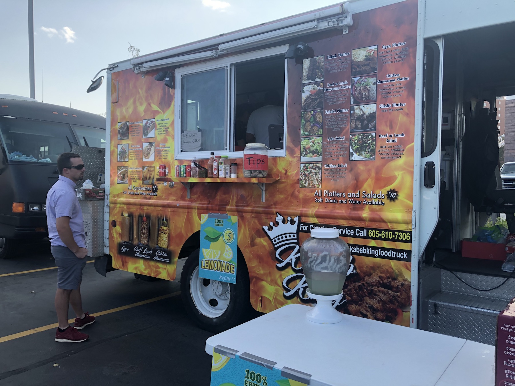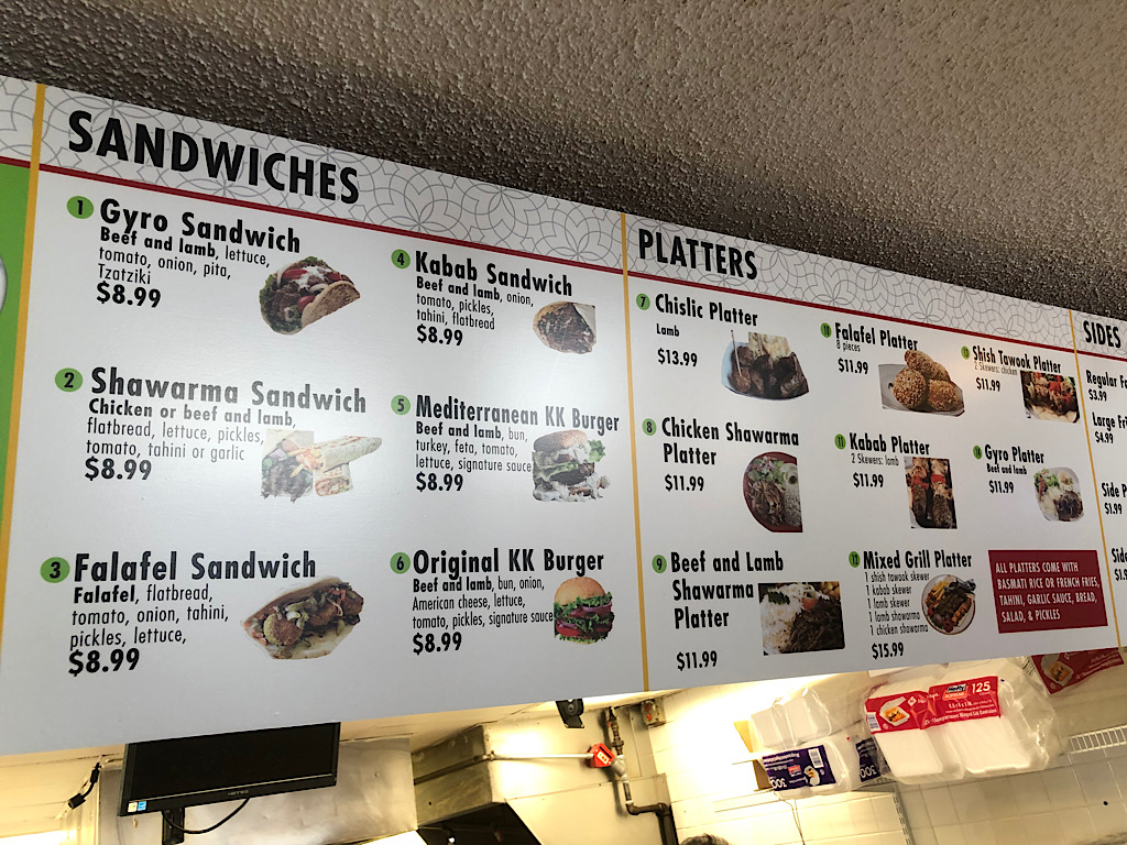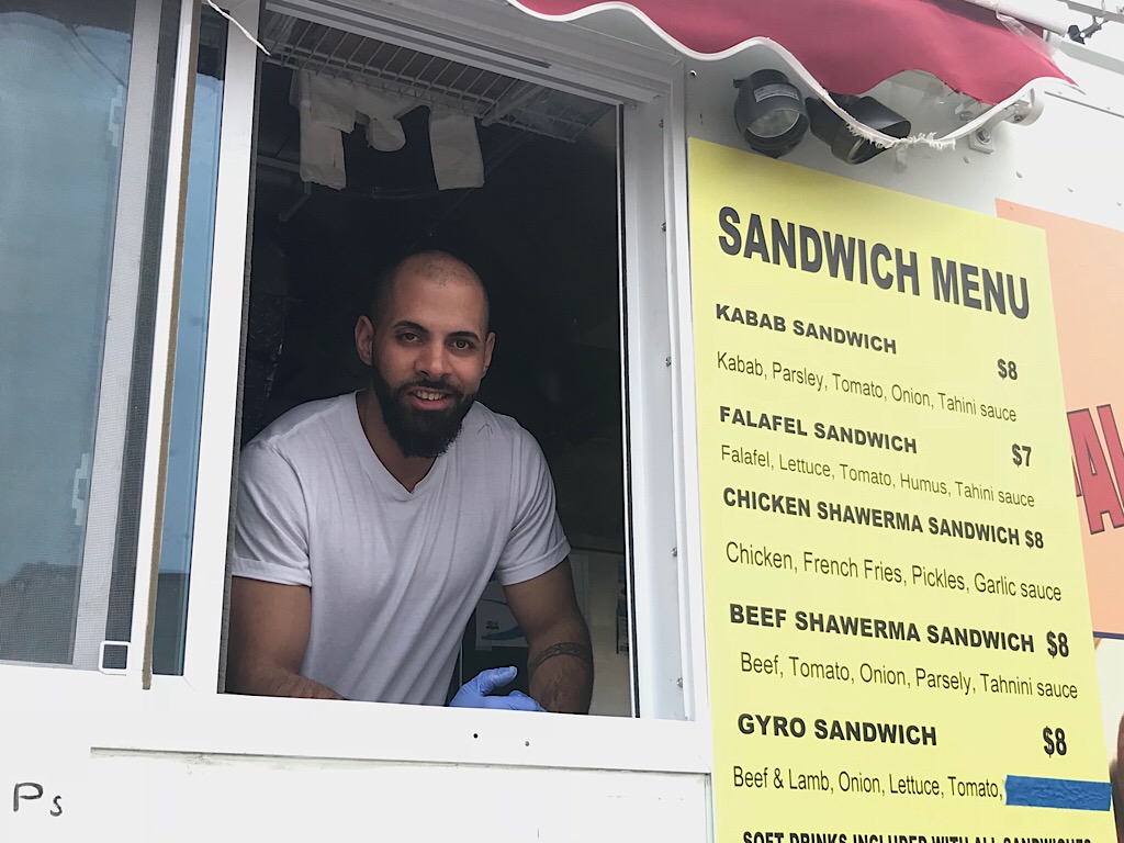 The menu features favorites from the food truck such as kababs, shawarma, gyros, falafel and chislic.