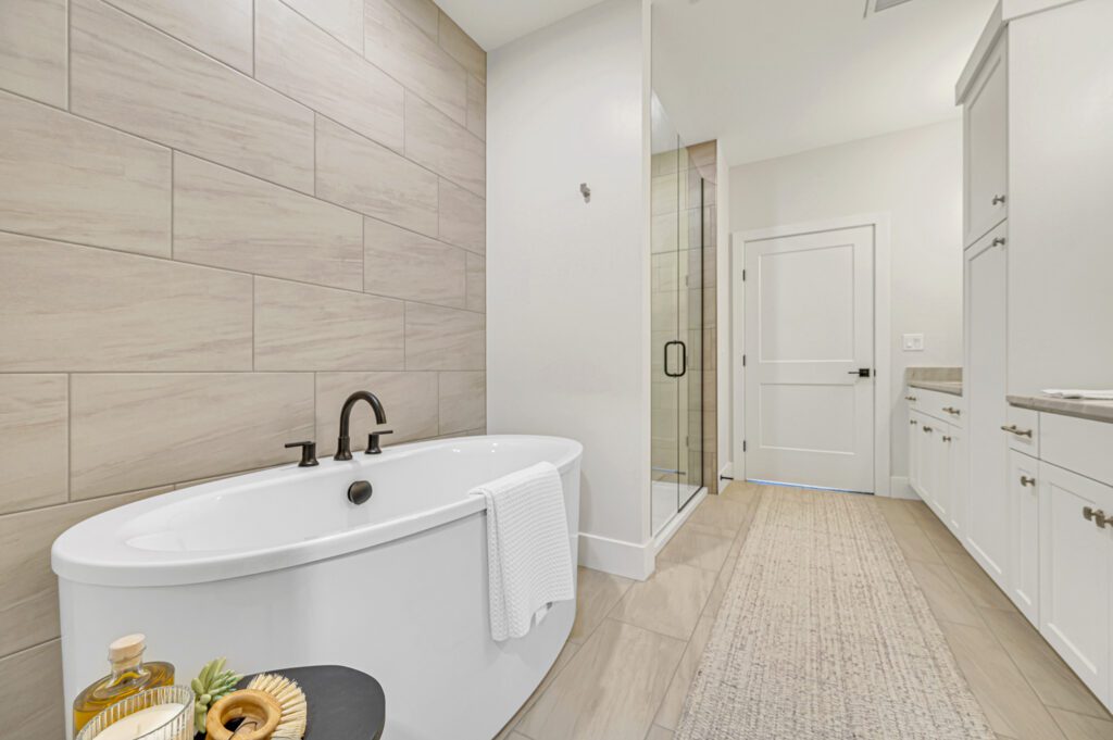 “We are always looking for the best-quality products, and we were able to inject those into these homes with natural stone countertops throughout, lime wash paint finishes, cast stone fireplaces, freestanding tubs — the list goes on and on,” Locke said.