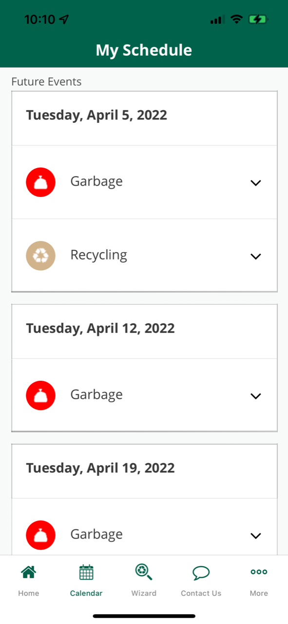 You can set the app to notify you the day before your service or the day of to remind you if you need to put out your recycling container.
