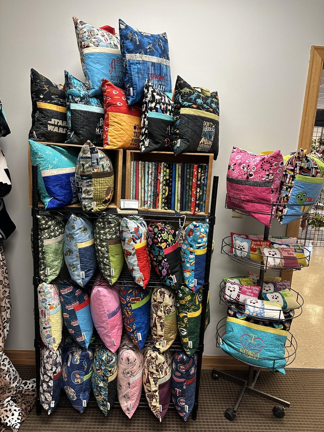 For the pillows made of fabric featuring the popular Harry Potter series, Chaput reminds children that “Books turn muggles into wizards.” Fabric that displays the Paw Patrol animals will share a rhyme: “No book too big, no book too small, we pups will read them all.”