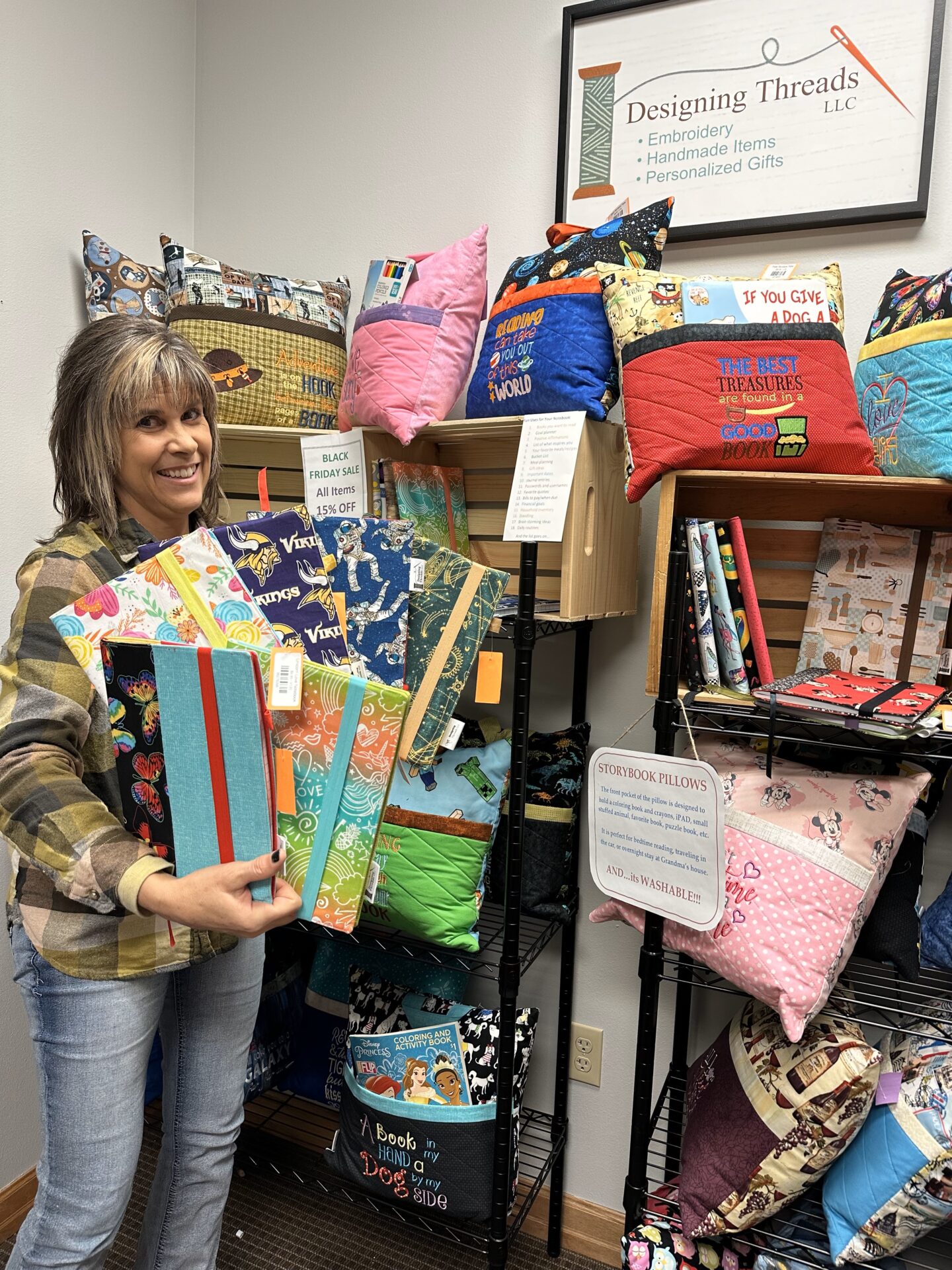 Her storybook pillows along with kid-themed pillows, fabric-backed composition books designed for children and adults, and pillowcases filled with smaller gifts will be available Saturday at the 605 Made Holiday Market. One of her most popular items, tooth-fairy pillows, can be found at Mulberry Market, but it’s difficult to keep up with the demand for those, Chaput said.