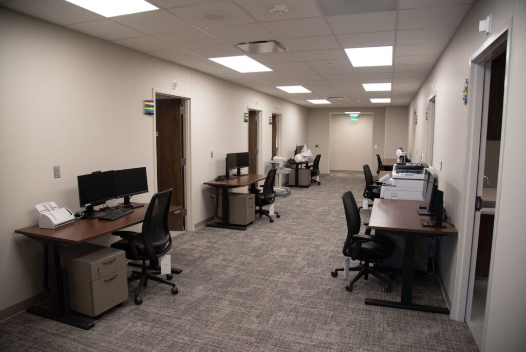 “The idea was to give this building a homier feel,” Scott said. “So you’ll see things like wood-framed guest furniture in the waiting areas instead of steel-framed.”